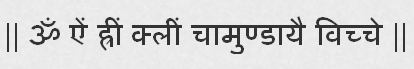OM AIM HRIM KLIM CHAMUNDAYE VICHCHE OM AIMG HREEMG KLEEMG CHAMUNDAYE VICHCHE ( Para utilizar este mantra debes estar llevando tu vida de forma honesta y comprometida tanto con el bien personal y como con el grupal. ------- Primero -------