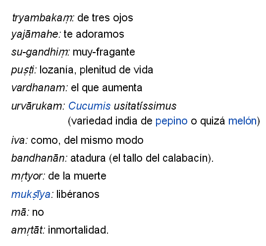 Adicional tomado de http://es.wikipedia.org/wiki/Mantra_maja-mritiun-yaia Aproximación de pronunciación (adaptación personal): OM Que, palabra por palabra significa: