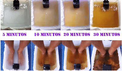 Esta terapia consiste en colocar sus pies en un recipiente con agua tibia y una cucharada de sal marina, dentro del recipiente se colocará un electrodo ozonizador conectado a una máquina, esta hará que dentro de 30 minutos que dura la sesión, millones de iones se incorporen a su cuerpo y comiencen a neutralizar estas basuras ácidas alojadas en los tejido, órganos, células, sangre, linfa, estas toxinas usted las ve fuera de su cuerpo y quedan en el agua son residuos tóxicos, grasas, conservantes, metales, minerales, ácidos, etc.